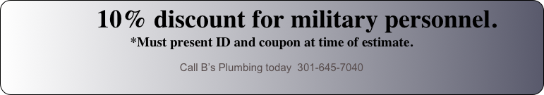 Description: Coupons, Discounts, and specials on plumbing services for military, water heater maintenance specials, repeat plumbing discounts and senior discounts available in Maryland, DC, Virginia and Delaware
